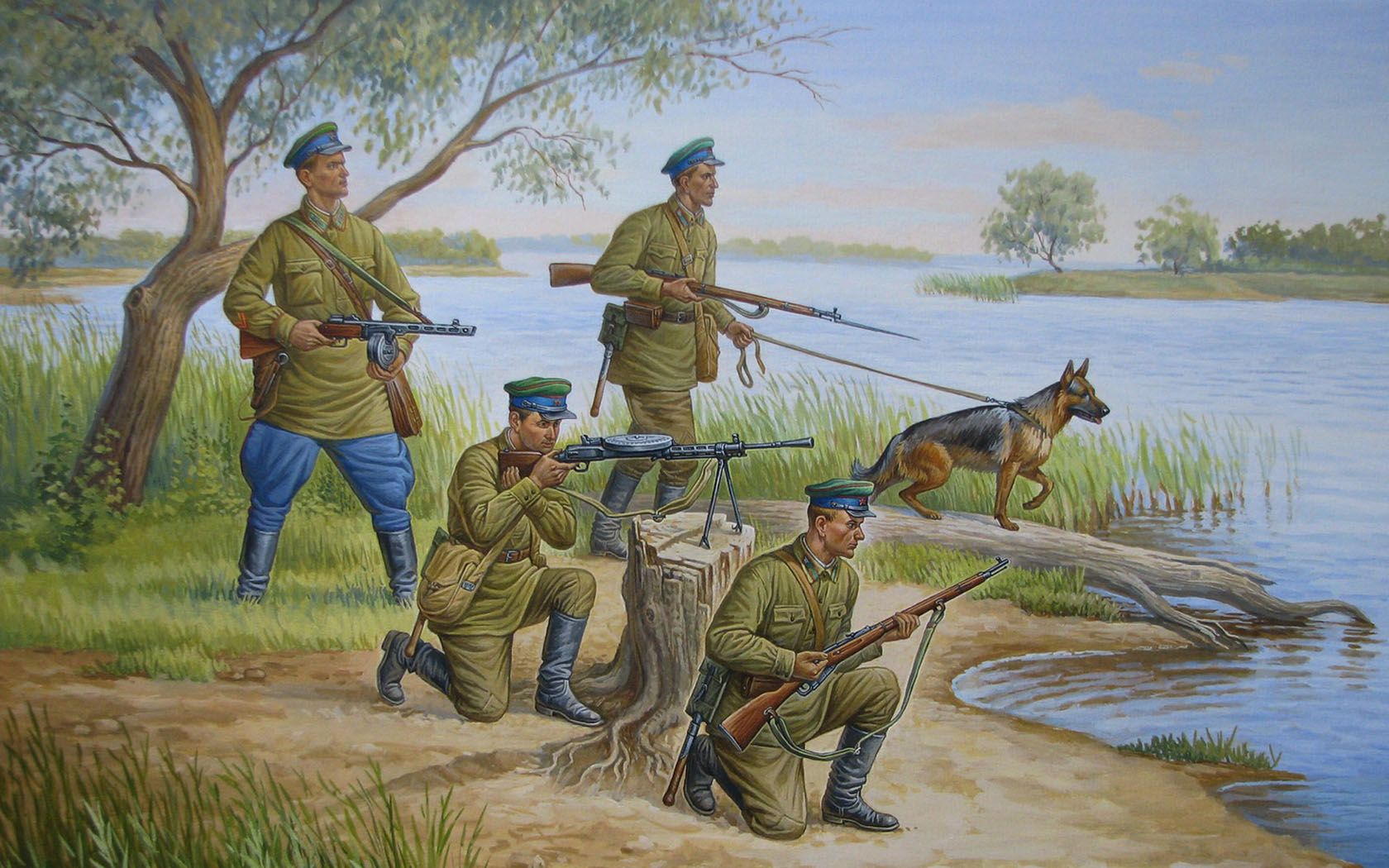 Простые бойцы-пограничники имели на вооружении знаменитую винтовку Мосина