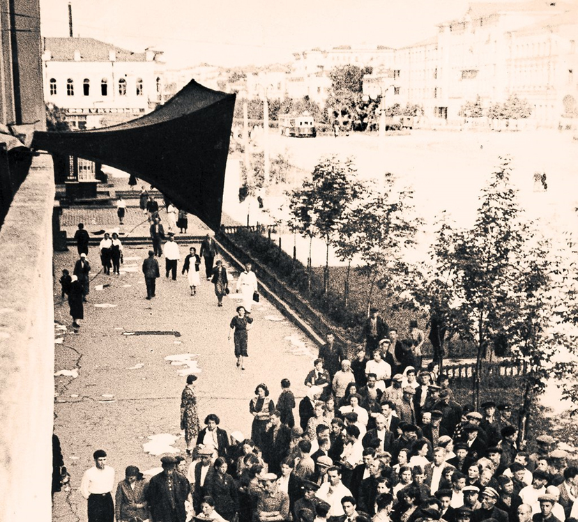 На фотографии: граждане СССР слушают сообщение о нападении нацистской Германии на СССР.